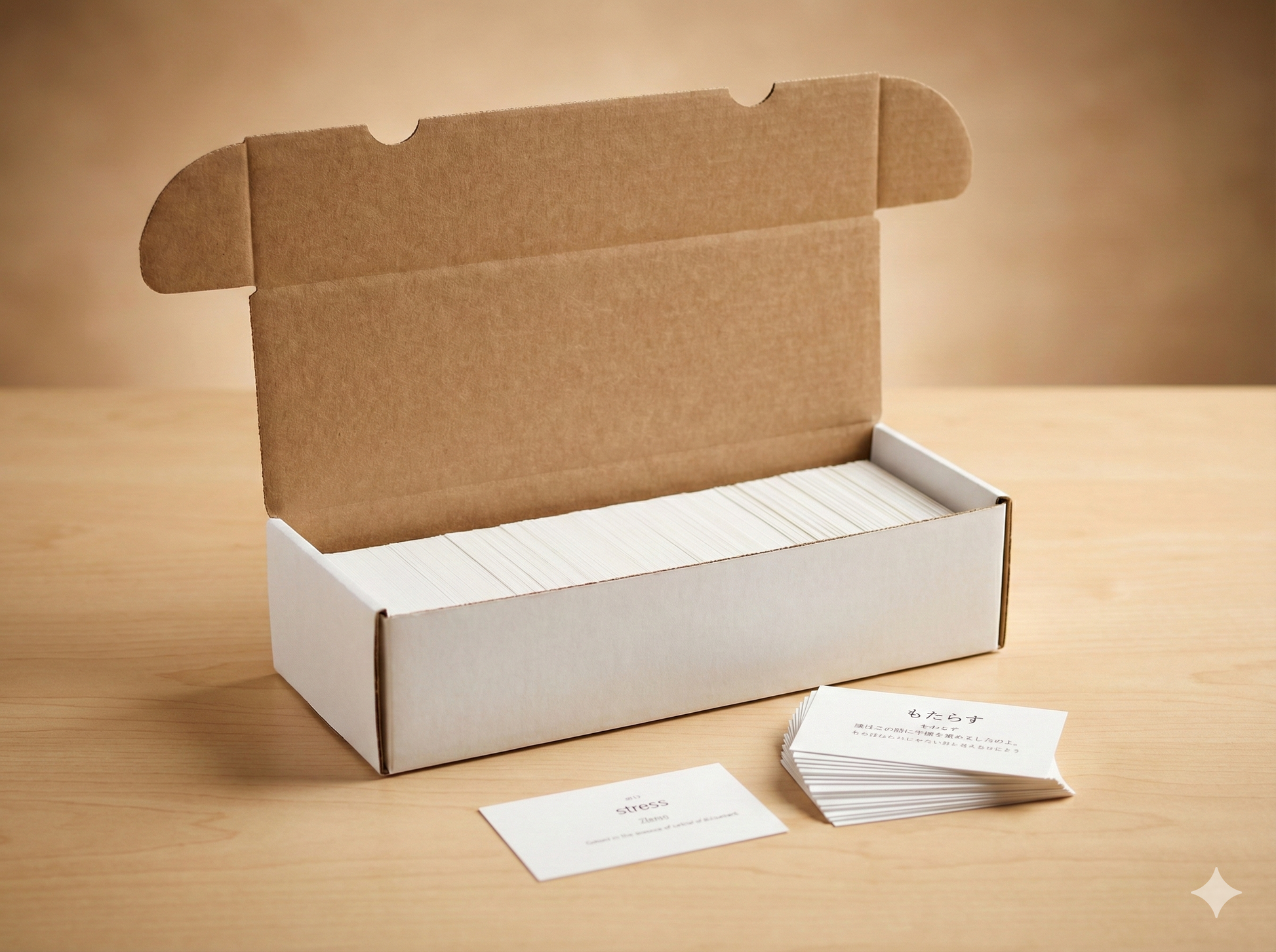 - Physical, heavy cardstock - no screens, no subscriptions needed